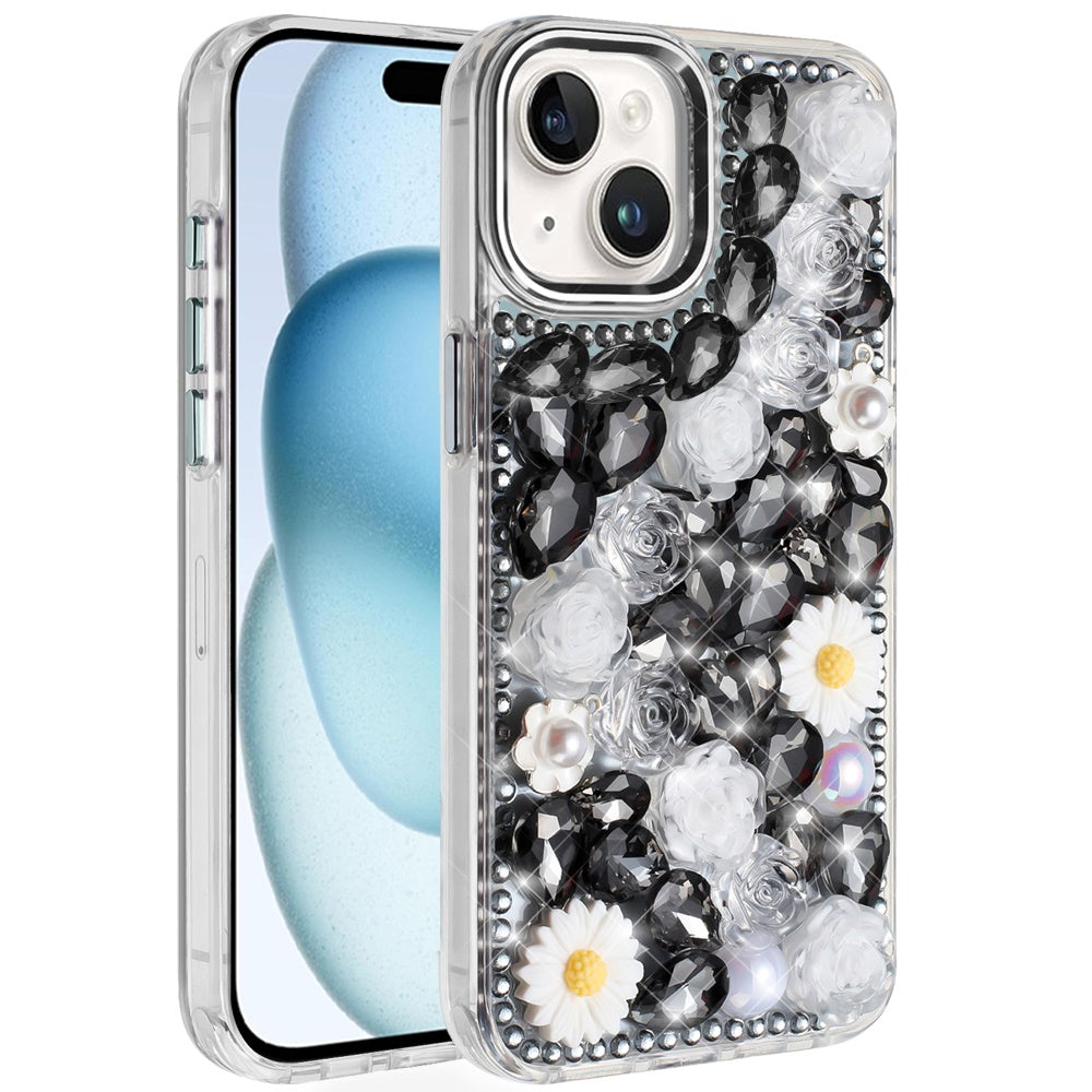 iPhone 15 Black Floral Bling Glitter Hybrid Case