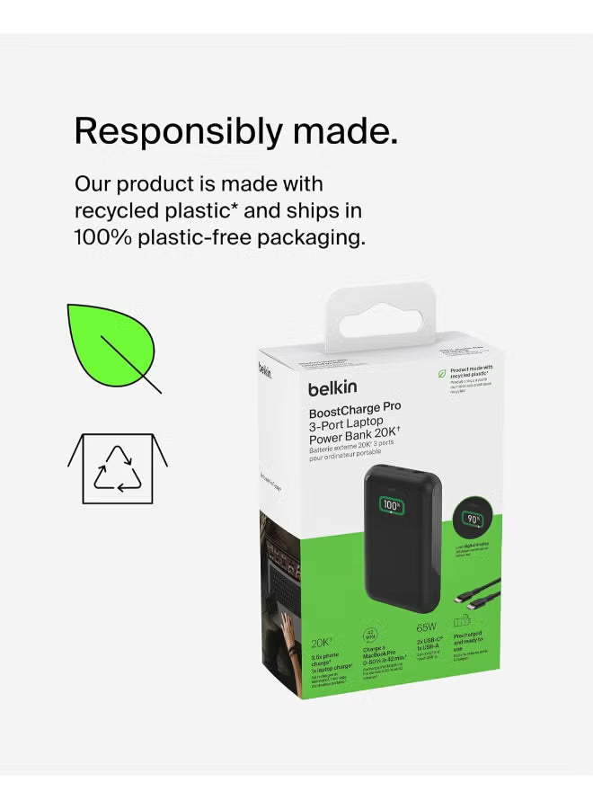 Belkin 20000 mAh Boost Charge 3-Port Laptop Power Bank With USB-C And USB-A Ports